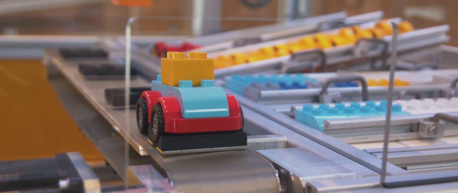 To illustrate this, individualized cars are produced from Duplo bricks. The cars can be configured via a web store interface. The order triggers the real-time production.